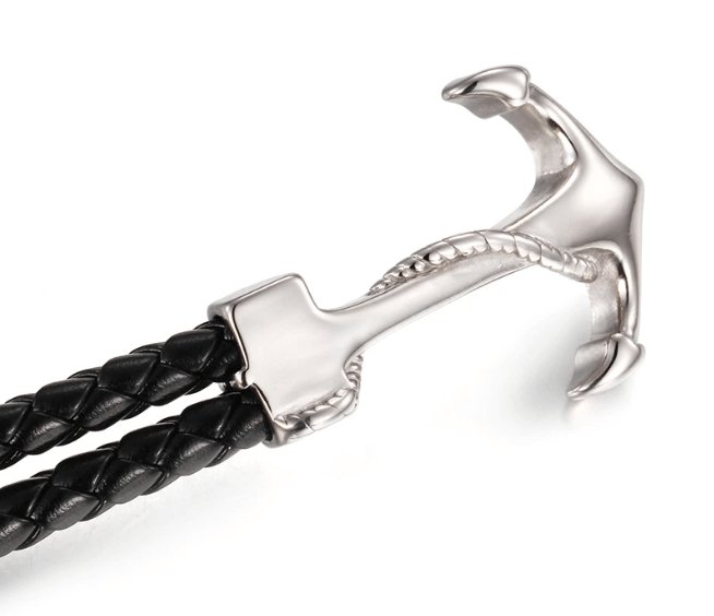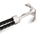 Ce bracelet pour homme orné d'une ancre de bateau argentée et d'un cordon en cuir tressé, offre un look très masculin. À la fois chic et séduisant, ce bracelet sublimera votre poignet.