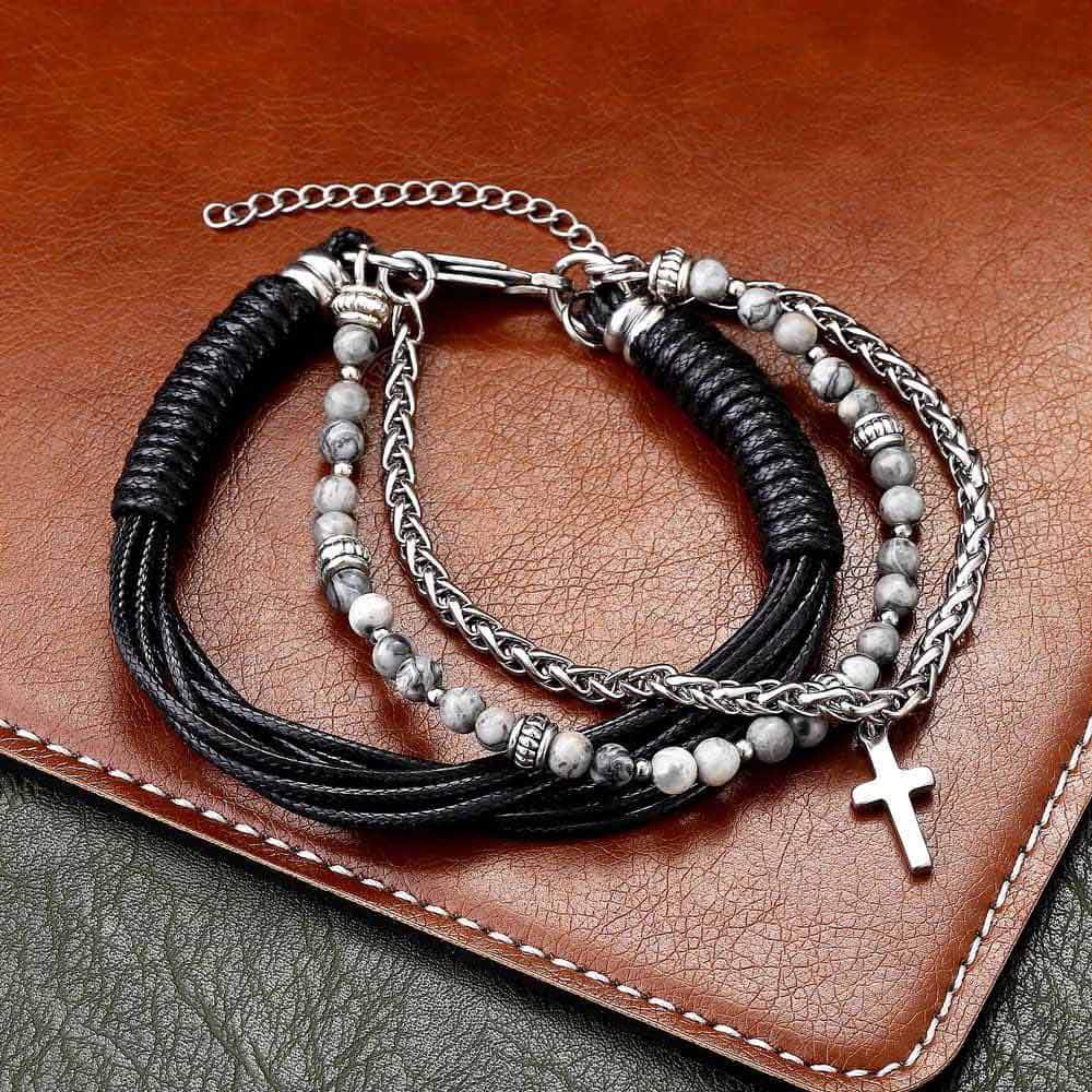 Le Bracelet Croix Homme Chic et Tendance est un très beau bijou décontracté et élégant. Juste équilibre entre les différents matériaux, ce bracelet plaira aux hommes souhaitant affirmer leur style, en accord avec leurs convictions.
