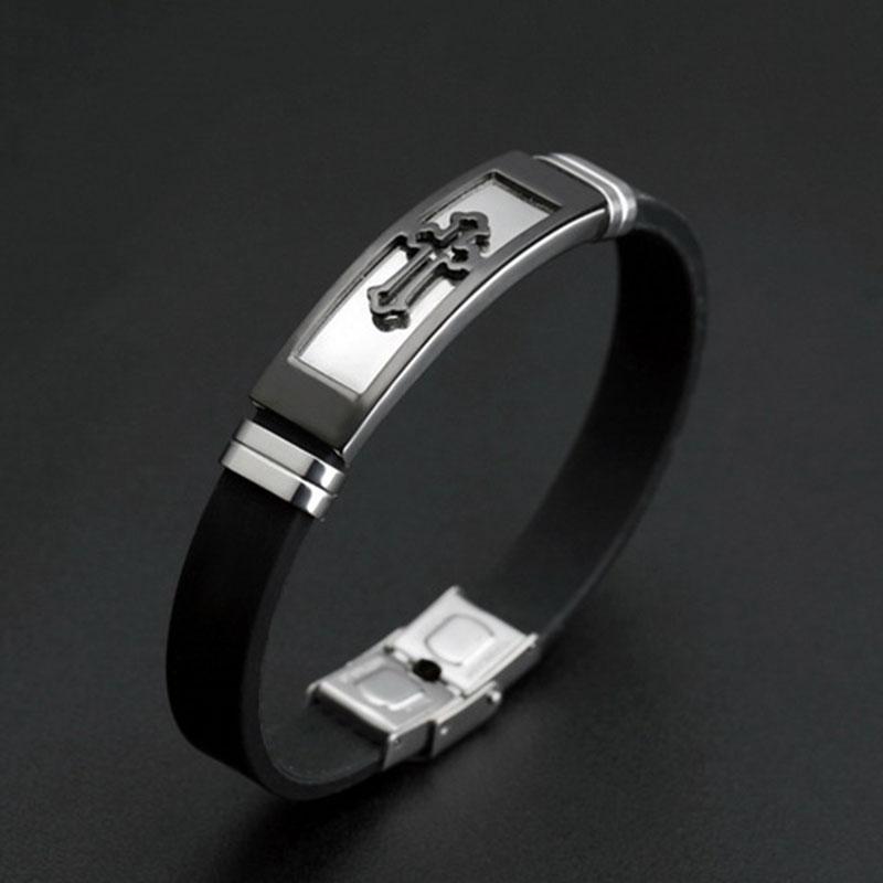 Bracelet pour homme avec une Croix en Relief : Silicone