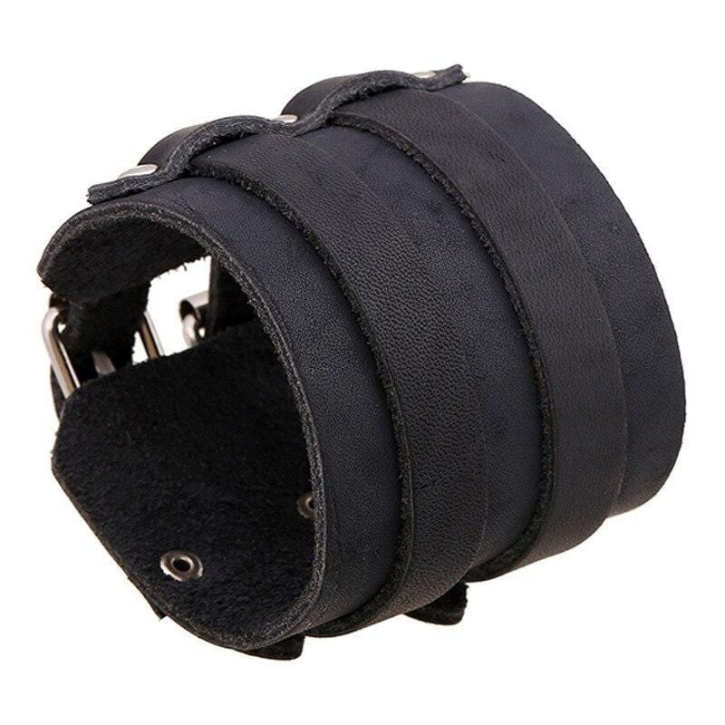 Confectionné en cuir véritable, ce bracelet de force est un accessoire très prisé par les métalleux, les punks ou encore les gothiques. Facilement réglable grâce à deux sangles solides, il s'adaptera à la dimension de votre poignet sans aucun souci. Amplifiez la masculinité de votre look avec ce bracelet de force viril et ses matériaux de haute qualité.
