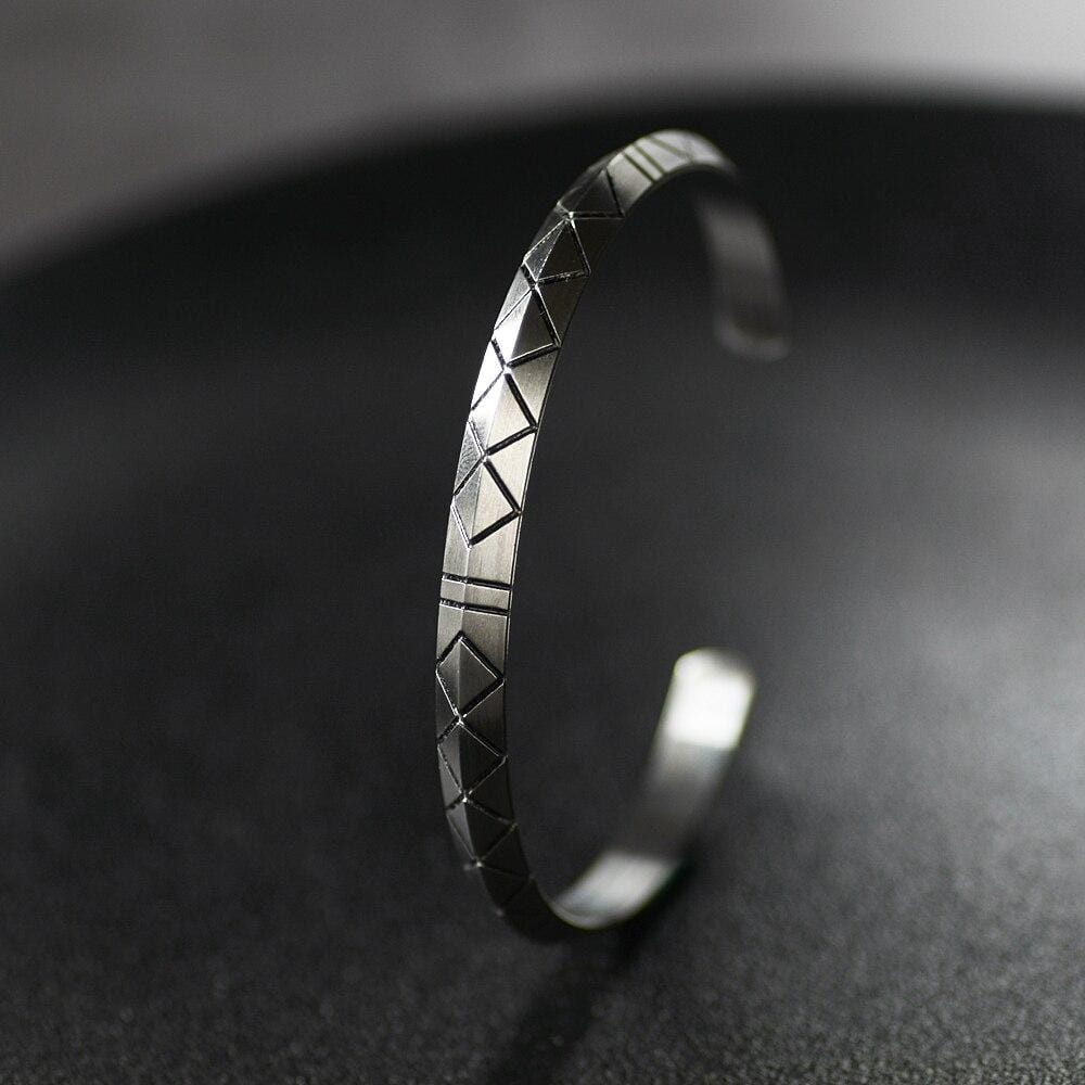 Bracelet Jonc Homme Formes Géométriques en Acier