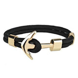 Ce bracelet avec une ancre dorée et au cordage bleu marine n'attend plus qu'un capitaine de bateau pour venir s'enrouler autour de son poignet.