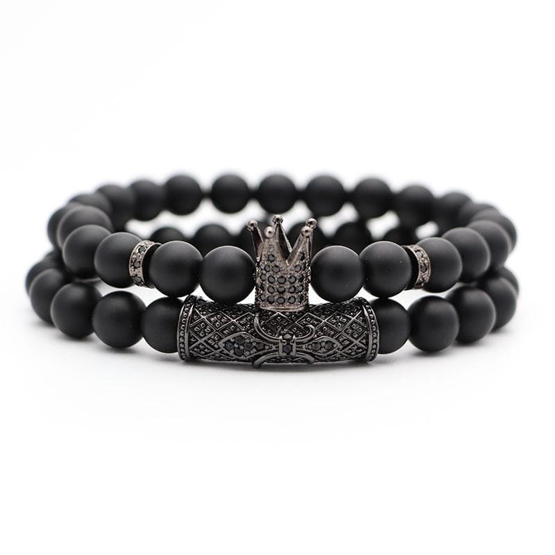 Bracelets Couronne Perles Noires Duo Homme en Pierre