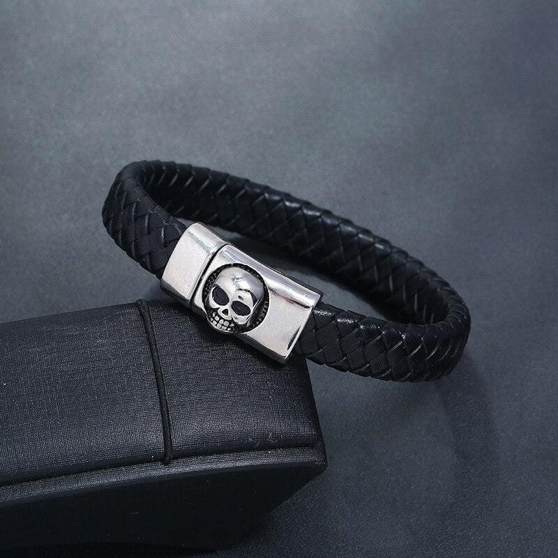 Bracelet Homme Tête de Mort Aimanté en Cuir
