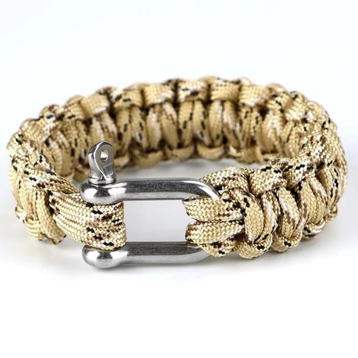 Un bracelet de survie en paracorde avec une manille en acier inoxydable