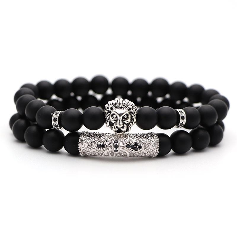 Avec cet ensemble magnifique de bracelets en pierres naturelles ainsi qu'une majestueuse tête de lion, vous n'aurez plus jamais besoin de vous creuser la tête pour trouver un accessoire à assortir à votre look. La combinaison de ses perles noires mattes et les détails sublimes de ce lion doré ou argenté, font de cet ensemble un duo d'accessoires stylés qui offriront élégance et classe à votre look. Ces bracelets pour hommes s'étirent en fonction de votre poignet grâce à leurs élastiques souples et résistants de qualité.